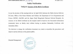 Department of Civil Registration is pleased to notify general public that the Lhuentse Civil Registration & Census will be starting the conduct of annual census with effect from 3rd February… Read more »